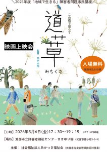 箕面市立障害者福祉センターささゆり園では、令和8年3月6日(金)17:30より【令和7年度「地域で生きる」障害者問題市民講座】を